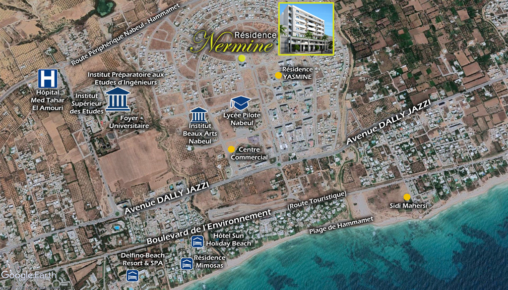 C'est une résidence estivale située dans la nouvelle cité AFH MREZGUA, à proximité de la plage de la zone touristique, dotée d'une piscine collective. Plusieurs appartements offrent une vue imprenable sur la mer.